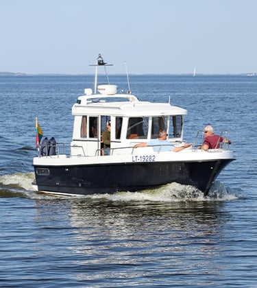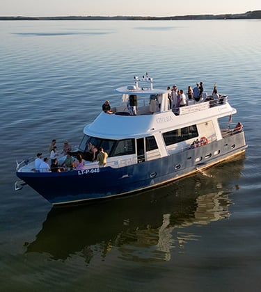 Discover unforgettable moments on the serene waters of the Curonian Lagoon with our boats – designed for celebrations, excursions, and tailor-made adventures.