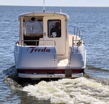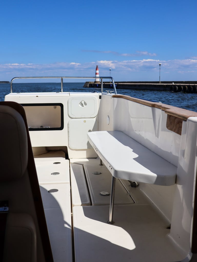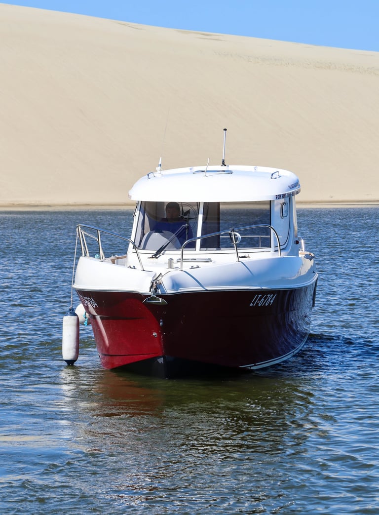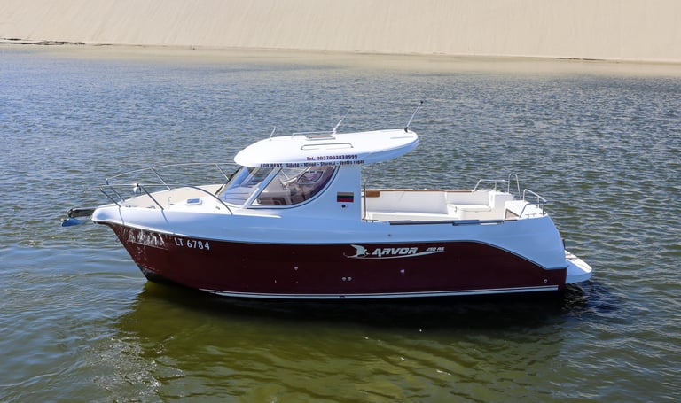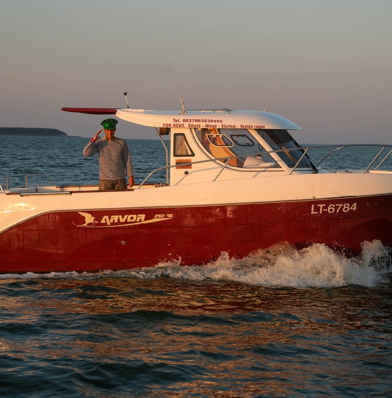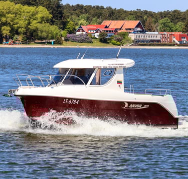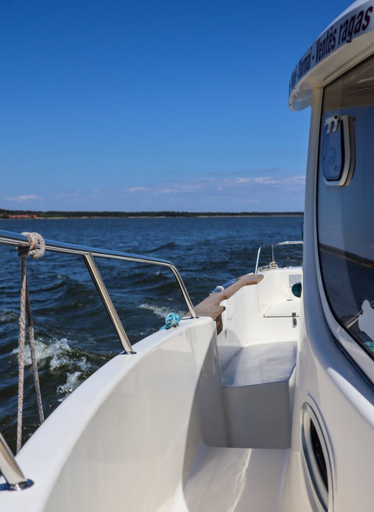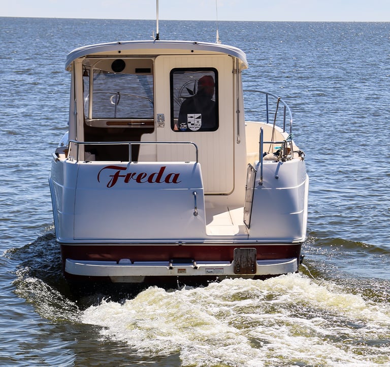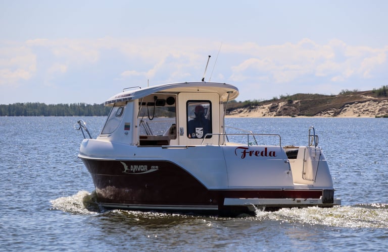 FREDA is a high-performance boat offering plenty of room and comfort, making it ideal for unique outings on the Curonian Lagoon. Whether you’re planning a family getaway, a bird-watching tour, or a lively bachelor or bachelorette party, FREDA is the perfect choice for groups of up to 8 people.
