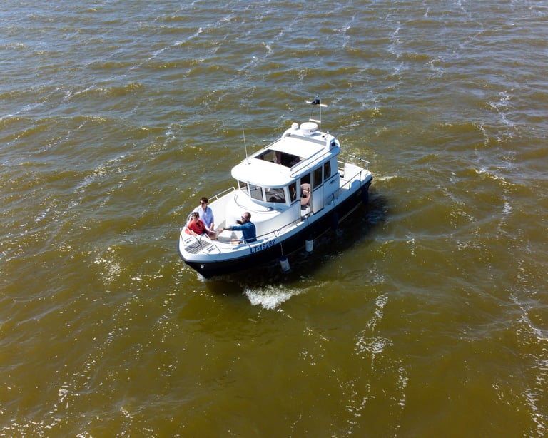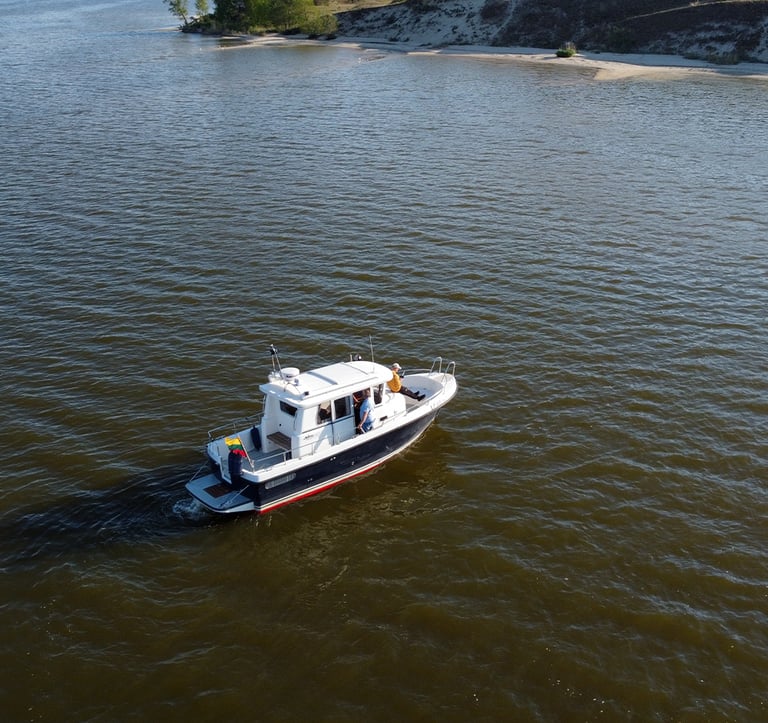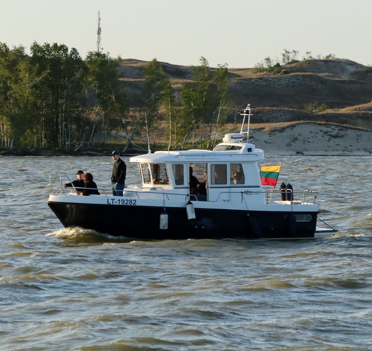 The Minor Offshore 27 is a versatile and reliable high-speed boat, designed to provide unforgettable experiences on the Curonian Lagoon. Accommodating up to 8 passengers, it’s the ideal choice for intimate adventures, family outings, and customized trips.