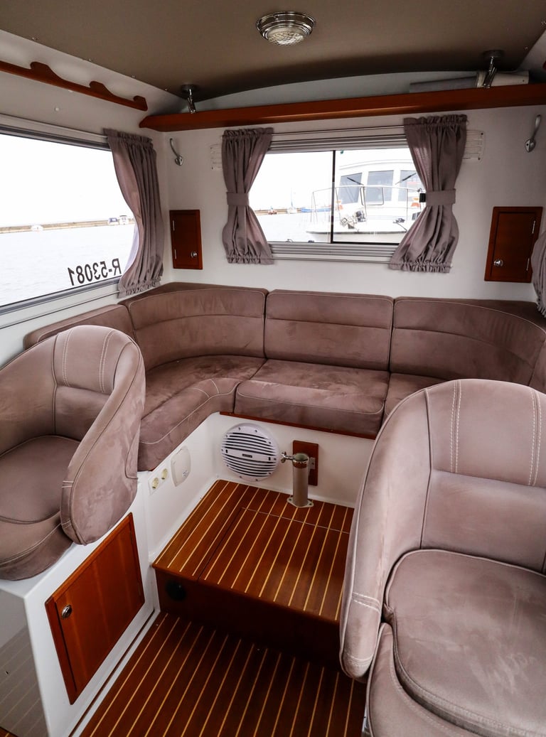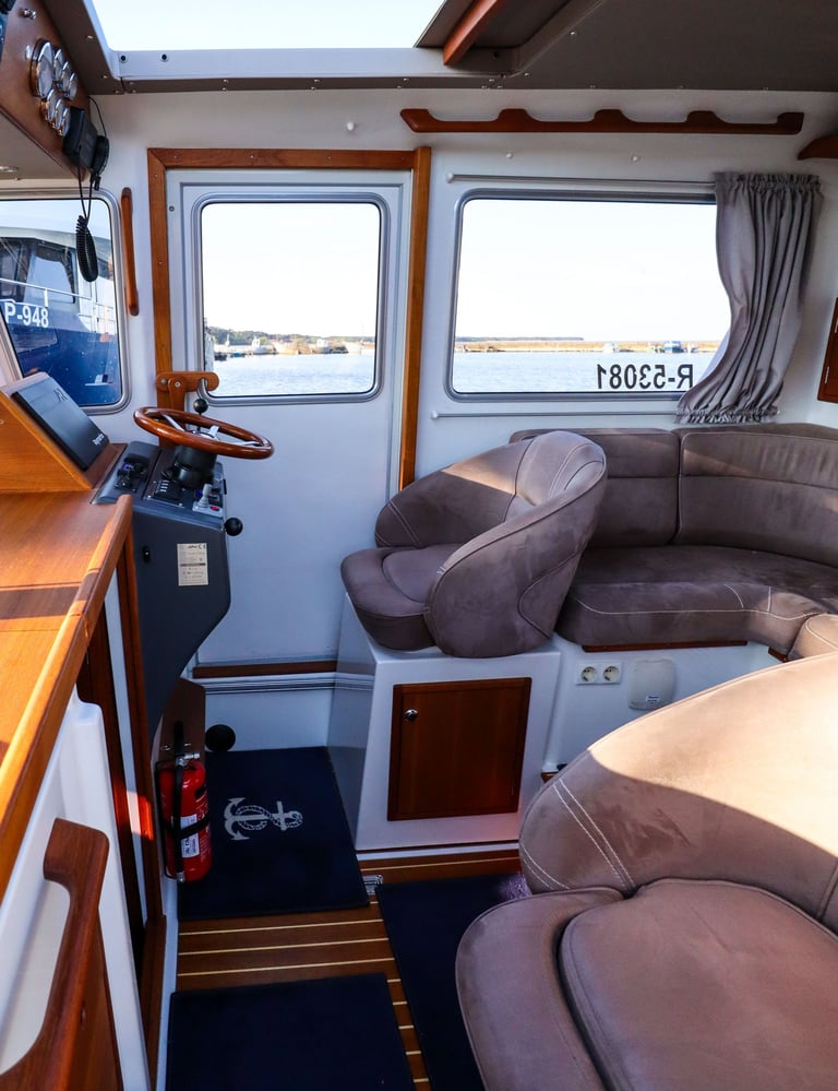 No need to worry about unexpected changes in weather—Minor’s enclosed cabin provides a cozy, protected space for passengers. Its thoughtful design ensures you stay comfortable and dry while still enjoying the stunning views of the Curonian Lagoon.
