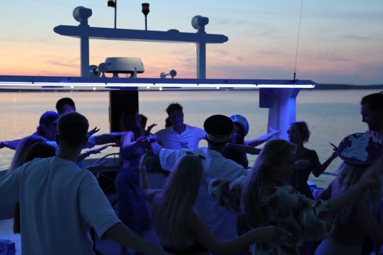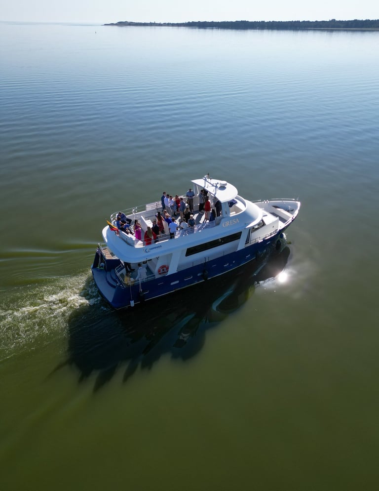 Turn your special moments into unforgettable memories with celebrations on the Curonian Lagoon. Whether it’s a romantic wedding ceremony, a lively birthday party with a DJ, a team-building cruise, or bachelor or bachelorette party, we offer the perfect setting.